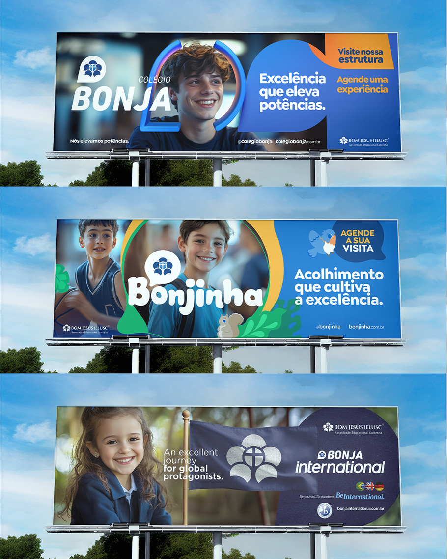 Foi com esse desafio que a Exit estruturou a comunicação de @bonjinha, @colegiobonja e @bonja.international, traduzindo o que cada uma tem de único, mas mantendo um fio condutor estratégico: a excelência que atravessa todo o ecossistema do BOM JESUS IELUSC.