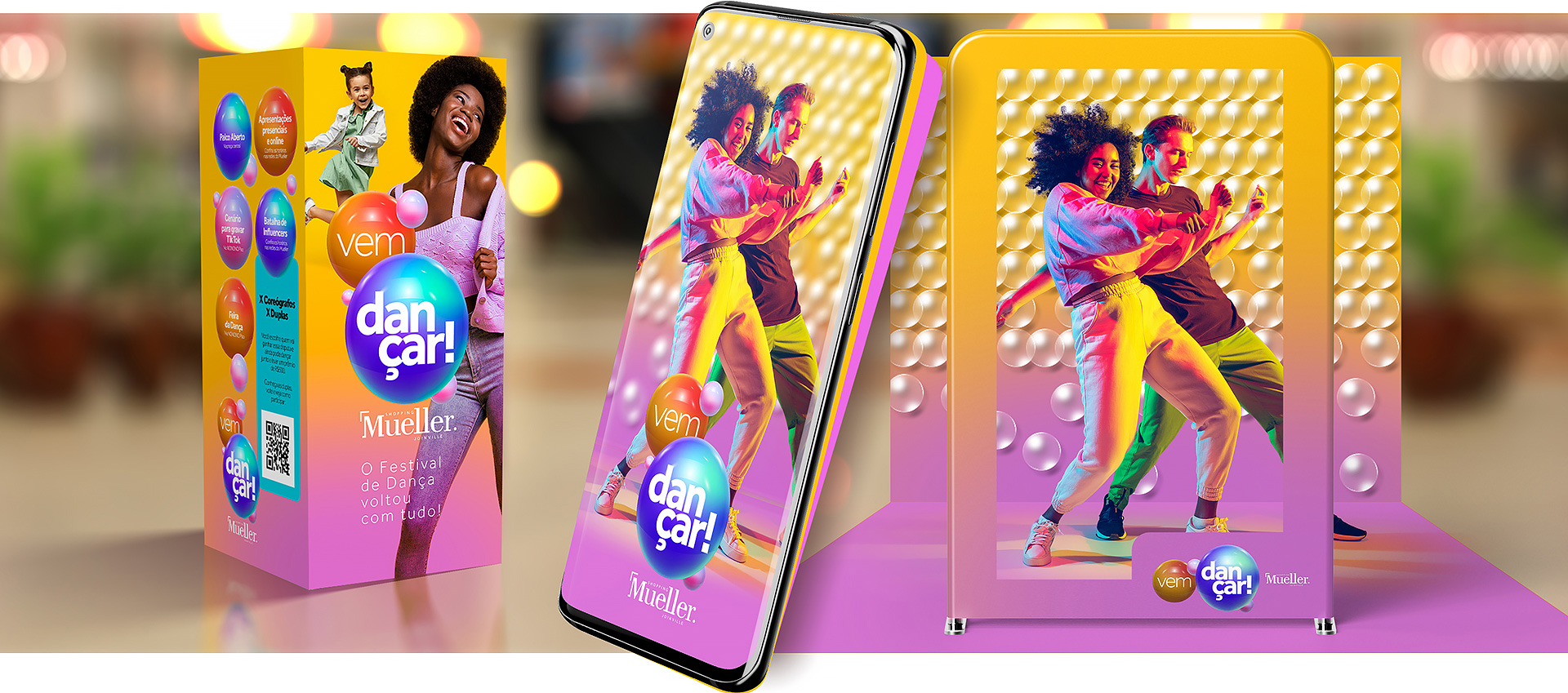 Estratégia híbrida mescla ações presenciais e digitais para fazer do Shopping Mueller o principal palco aberto do Festival de Dança de Joinville.